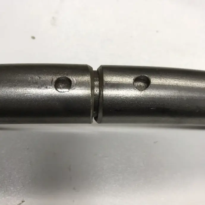 At the junction, we insert a sleeve from a hollow thick-walled pipe, fasten it with additional electric rivets and scald it along the entire radius. Thus, the seam becomes more reliable than a solid pipe.